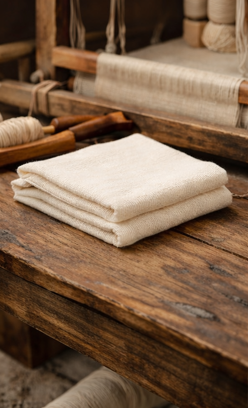 Designed for daily wear, traditional attire, meditation, travel, or light weather protection, the fabric is breathable, skin-friendly, and suitable for all seasons. The natural texture and subtle off-white tone reflect the authenticity of slow, ethical craftsmanship.